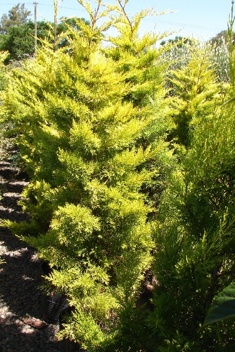 Este ciprés, grande y de crecimiento rápido, ha sido plantado en diversos países como árbol ornamental, de pantalla protectora o de seto. Sin embargo está expuesto al daño de los inviernos crudos y las heladas primaverales y no suele sobrevivir si se planta lejos del mar. En 40 años alcanza una altura de 30m, pero a veces sobrepasa los 37m. En las costas batidas por los vientos se vuelve desvaído y desalineado, pero en lugares con resguardos forma un cono bastante amplio o una columna bastante estrecha que con los años se aplana por arriba casi como el cedro del Líbano. Color del follaje: verde oscuro.
