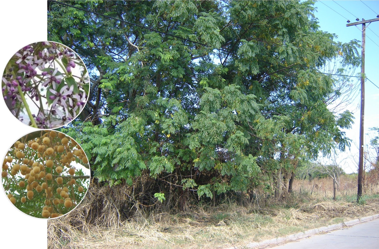 Es una especie arbórea del género Melia de la familia Meliaceae. Nativo del sudeste asiático, se difundió a mediados del siglo XIX como ornamental en Sudáfrica y América, donde se naturalizó con rapidez, convirtiéndose en una especie invasora que desplazó otras autóctonas. Se cultiva aún para decoración y sombra, sobre todo por su ancha y frondosa copa, a la que debe su nombre común.