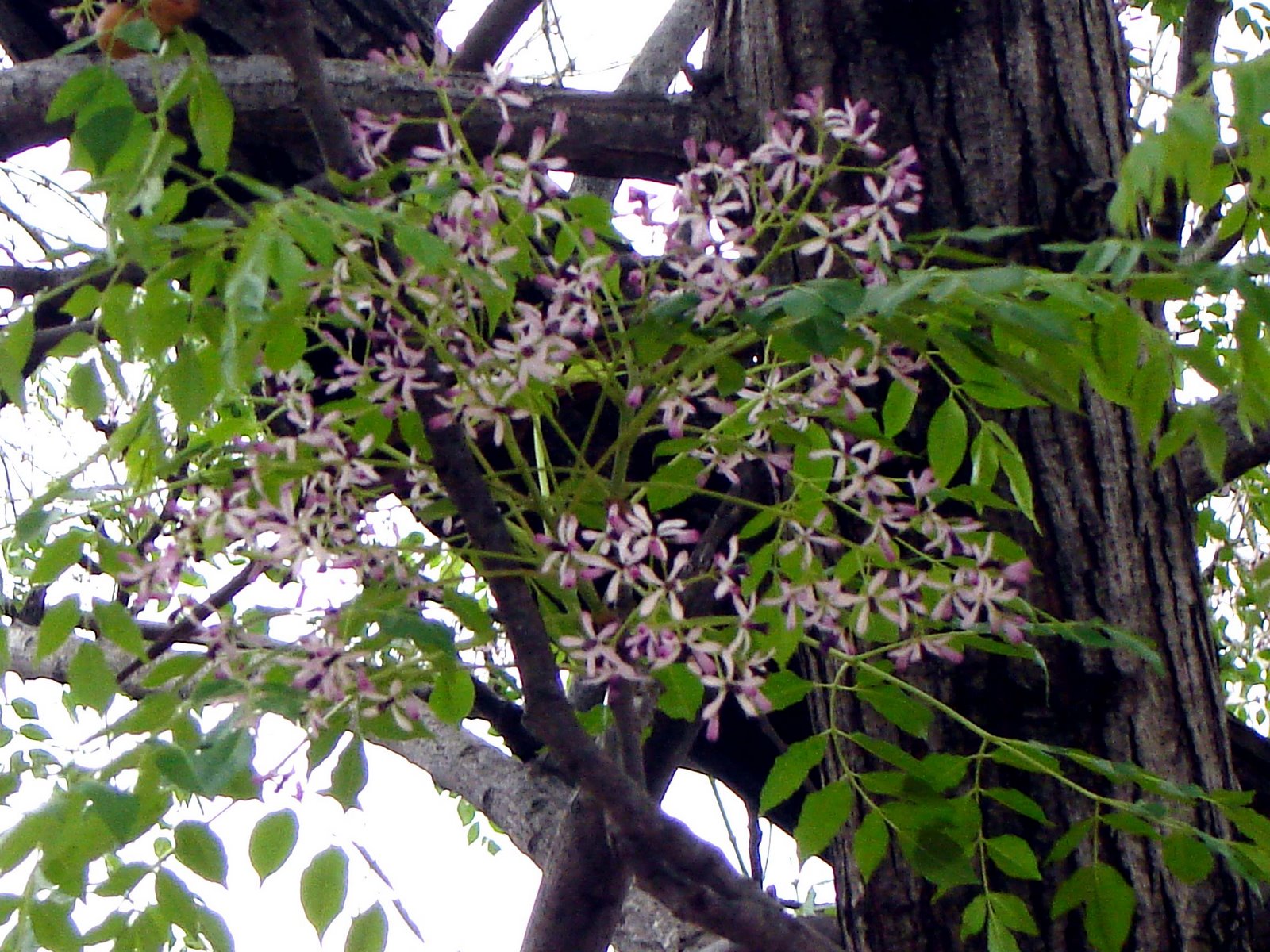 Es un árbol caducifolio de tamaño medio, de 8 a 15 m de altura, con el tronco recto y corto; la copa alcanza los 4 a 8 m de diámetro, en forma de sombrilla. Las hojas son opuestas, compuestas, con pecíolos largos, imparipinnadas, de 15 a 45 cm de longitud; los folíolos son ovales, acuminados, de 2 a 5 cm de largo, de color verde oscuro por el haz y más claro en el envés, con el margen aserrado. Las flores, pentámeras y de color púrpura o lila, se organizan en panículas terminales de hasta 20 cm de largo, muy fragantes. El fruto es una drupa de 1 cm de diámetro y forma globosa, de color verde y amarillo pálido en la maduración, con su endocarpo grueso con 1 semilla por lóculo, de 1 mm de largo por 0,3 mm de ancho