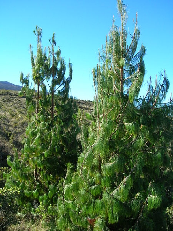 Pueden llegar de 20 a 40 m de altura, corteza papirácea, escamosa y rojiza. Sus hojas cuelgan como flecos. Tiene unos conos duros y escamosos que cuelgan en grupos de 3 a 6.