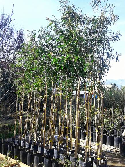 Los frutos son bellotas de color rojo-marrón de unos 2 cm, cúpula muy amplia y plana con escamas que cubren sólo la base de la glándula . Maduran en el árbol durante dos años para llegar a la madurez.