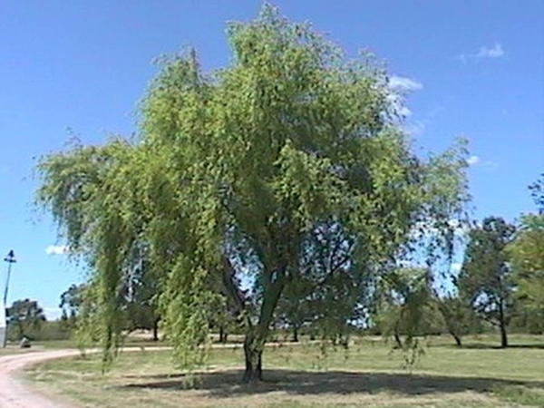 Es un árbol caducifolio dioico, alcanzando hasta 25 m de altura. Su follaje caduco es verde claro, con ramillas colgantes. Las hojas son simples, alternas, linearlanceoladas, aserradas, glabras, de ápice agudo, base cuneada de 6 a 12 cm de largo. Sus flores aperiantadas, están en amentos; masculinos de 7 cm de largo, amarillentos; femeninos verdes, de 3 a 4 cm de largo; florece en primavera. Su fruto es una cápsula marrón claro, con muchas semillas algodonosas en su interior.