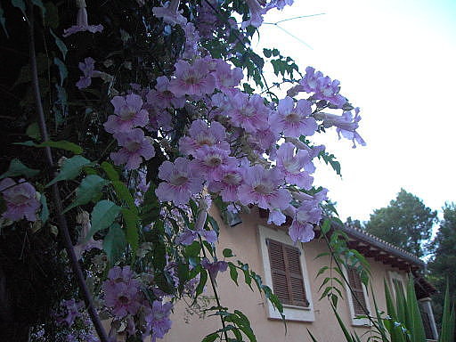 se enredan y se cubren de racimos colgantes de grandes flores azules a violetas; en tutores, pérgolas y en todo tipo de soporte o superficie de donde se pueda agarrar.