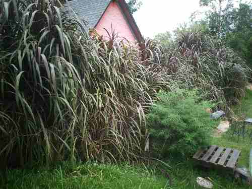 La lámina de sus hojas es linear-lanceolada, de atractivo color púrpura. Panoja terminal densa, sedosa, de color grisáceo