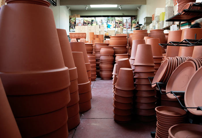 Barro, plástico, plástico rotomoldeado, fibro cemento, fibro cemento símil piedra parís, cemento, cemento pintado, fibra de vidrio, leca, cerámica, esmaltadas, cacharros, fibra de coco, vidrio, floreros