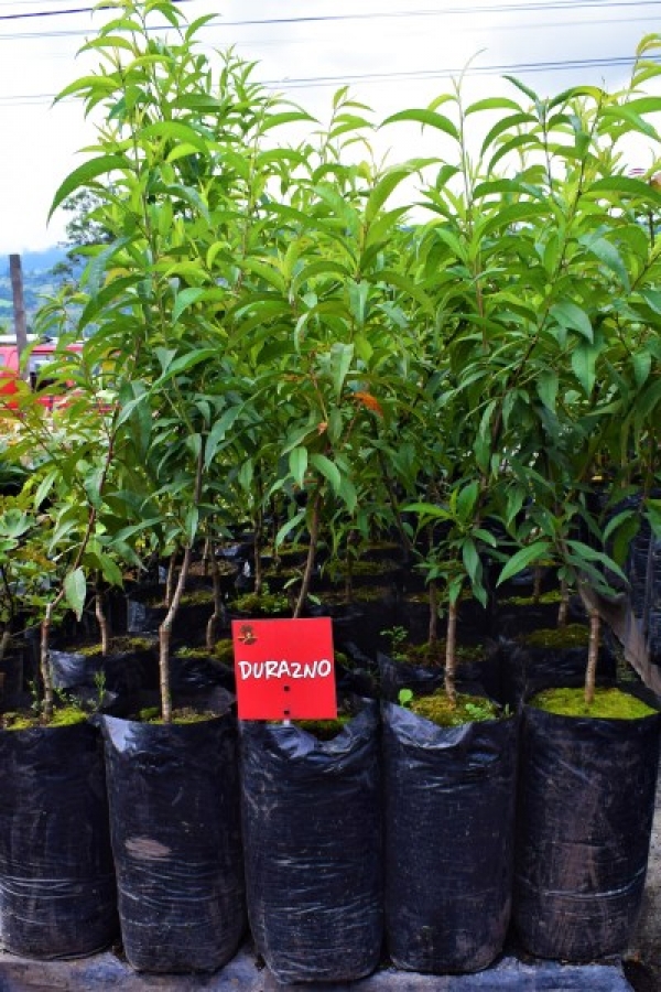 También se le suele denominar duraznero (del latín durus acinus, «que tiene la piel dura» —aludiendo a la piel del fruto—) y a su fruto, durazno en Canarias y en países como Argentina, Bolivia, Chile, Colombia, Ecuador, México, Paraguay, Perú, Uruguay y Venezuela.